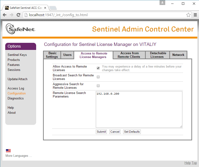 3. Click ‘Access to Remote License Managers’ tab